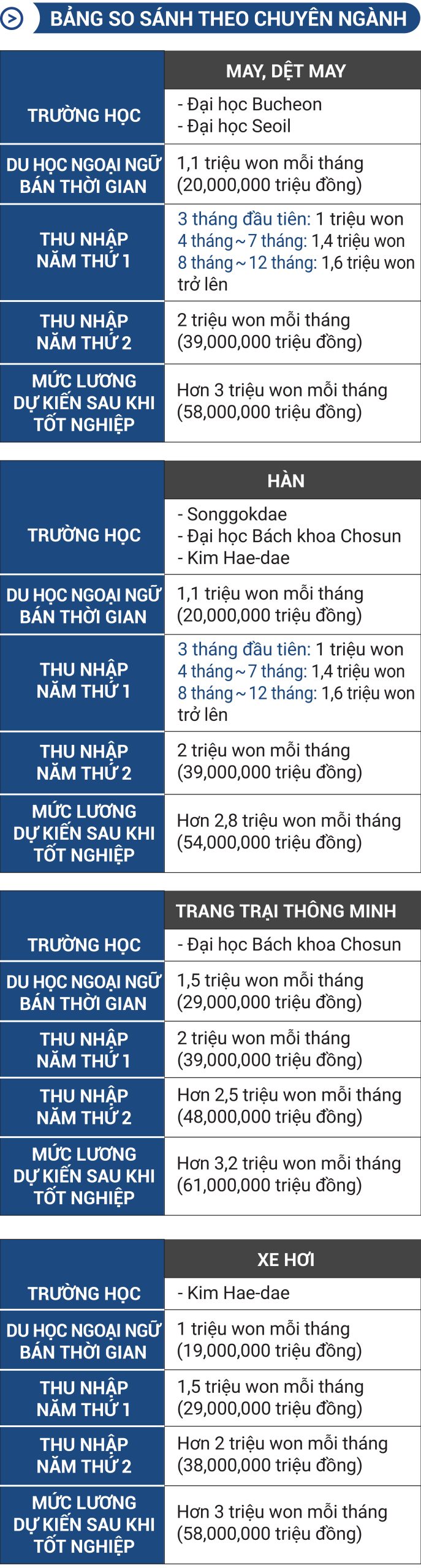 - Bằng cấp: Lấy bằng cấp liên quan từ một trường đại học Hàn Quốc thông qua chương trình và kết nối với các công ty.