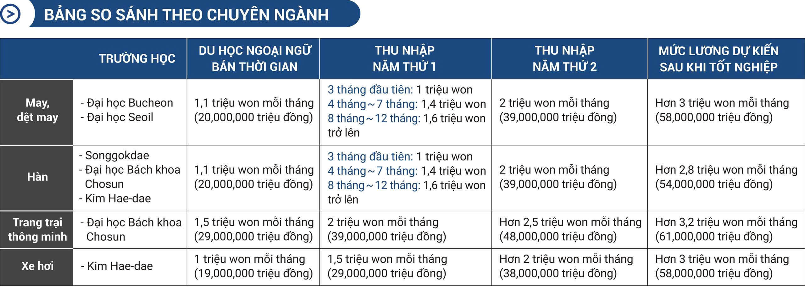 - Mức lương: Nhận lương tương đương ở Hàn Quốc.